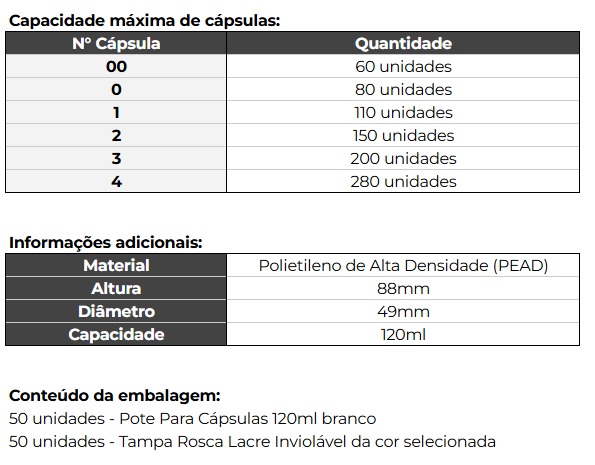 Características e Benefícios Pote Cápsula 120ml :