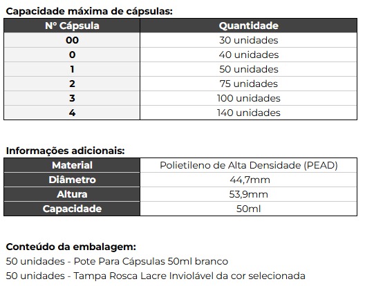 Características e Benefícios Pote Cápsula 50ml :